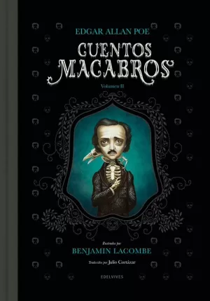Edgar Allan Poe es uno de los grandes autores del siglo XIX y el indiscutible maestro del relato de terror. Este segundo volumen de lujo de Cuentos macabros presenta nueve de sus inquietantes relatos magníficamente ilustrados por el artista Benjamin Lacombe y traducidos por otro gran escritor, Julio Cortázar: "Metzengerstein," "Manuscrito hallado en una botella," "El escarabajo de oro," "La máscara de la Muerte Roja," "Eleonora," "El jugador de ajedrez de Maelzel," "El rey Peste," "Conversación con una momia" y "El Ángel de lo Singular." Al final del libro se incluye un texto de Charles Baudelaire sobre la vida y la obra de Poe, texto que el francés escribió como prólogo de la edición francesa de Narraciones extraordinarias.